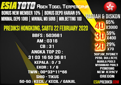 Prediksi Togel Hongkong Pools Sabtu 22 February 2020 PREDIKSI TOGEL